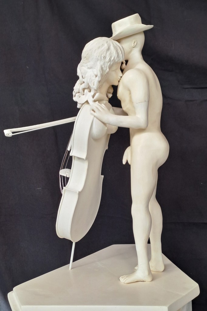 Amour, duo pour violoncelle Sculpture bronze : H X L X P : 56x45x32 cm – Poids : 19 Kg Epreuve en plâtre / H X L X P : 58x43x27 cm – Poids : 6 Kg 20240607_185340 Share this: Click to share on X (Opens in new window) X Click to share on Facebook (Opens in new window) Facebook Like Loading...